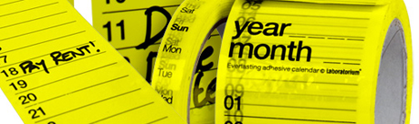 Everlasting Adhesive Calendar The everlasting calendar is a multi-functional adhesive tape which functions as an organizer, planner, post-it, tape, sticker and such all at once. It is limited only by its own length. You can create each month in any year by a day-and-date combination of two separate rolls (different widths) and stick them together at the place where you need it, including different surfaces, walls, tables, toilet walls... The calendar was created as a promotional gift (Christmas card) for Laboratorium’s clients and friends. Designer : Ivana Vucic, Orsat Frankovic+ website Size : Client : Laboratorium Production Method : |