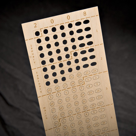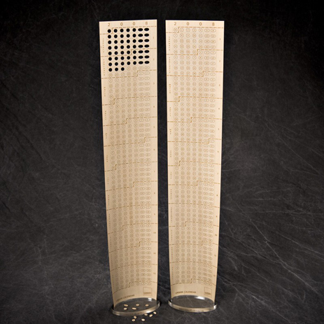 Urban Calendar The skyscraper was developed because real estate in the city became more and more expensive. In an urban area where land is limited and real estate is valuable, we build up (as it turns out this is a very "Green" way to build). Just like the city, the modern day desk has a limited amount of valuable real estate. With the URBAN CALENDAR you get the entire year in a very small footprint, 8 square inches. The URBAN CALENDAR has an elegant elliptical foot print that is 4" x 2.5" and rises to a height of just under 24" for its 53 stories (weeks) The "tower" is made of a hand sanded 1/32" piece of basswood. Designer : Robert Feyereisen+ website Size : 4" x 24" Client : For Sale Production Method : Each piece of basswood is hand picked for clarity. Then each day is burned into the wood and cuts are made so the days can pop out. After the burning process the basswood is hand sanded and installed in it base. |