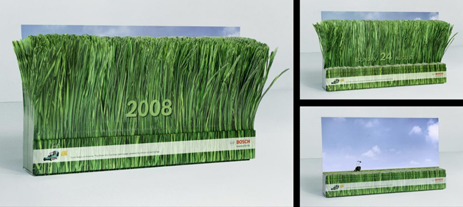 Every page in the calendar is cut in a special way to initially create the individual impression of a wild and untended lawn. The recipient becomes part of the action and tears off a calendar page every day. By doing this, he is actually continuing to ‘mow’ day by day and so, bit by bit, he has a perfectly cut lawn in front of him at the end of the year. It’s an authentic and unique mowing experience, because the width of the calendar corresponds exactly to the width of the lawn mower.