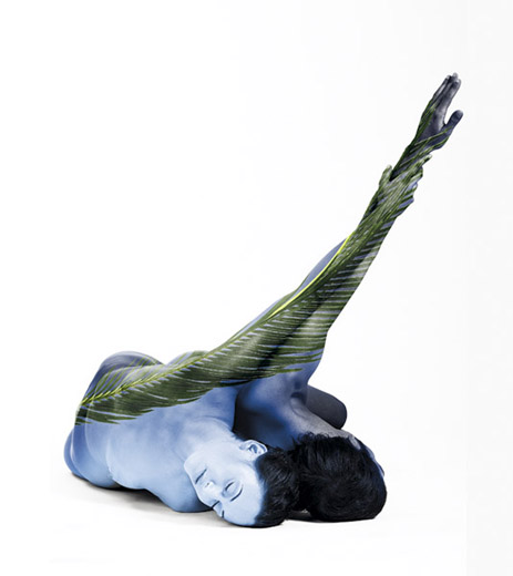 Man and nature look as if engaging each other into a play of poses, creating abstract and bizarre shapes, as if from magic and far-away macro-cosmos in which seasons seem to remain suspended in an everlasting stillness.