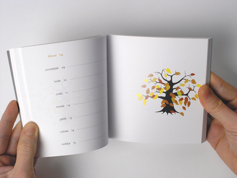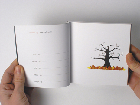Flip Book Calendar This calendar booklet contains a lovely flip book animation of a tree losing its leaves. It’s a nice and simple vector illustration and the type work on the cover is beautiful as well. It was designed by Tomato Kosir, who has a lot more fantastic design work in his portfolio. Designer : Tomato Kosir+ website Size : Client : Youth service Kranj Production Method : |