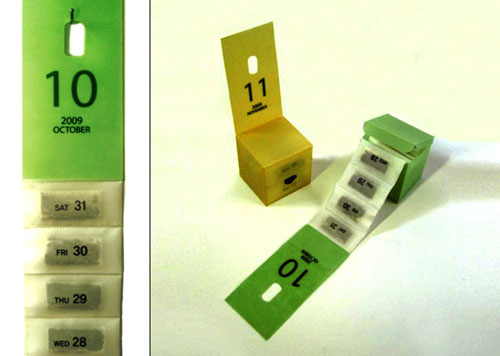 Tea Calendar Calendar Teabags are basically a box of teabags with a variety of teas packaged as the dates of that month. A novel idea for tea buffs and those who appreciate niche produts. You can pique interest by packing a mix of tea flavors from around the world, more like a collectible edition. Designer : Cho Hee Ha+ website Size : Client : Self Project Production Method : Teabag |