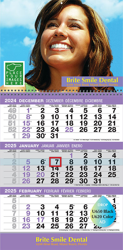 14 Sheets, 3-month View, Drop Ad Imprint, Wire-O Bound